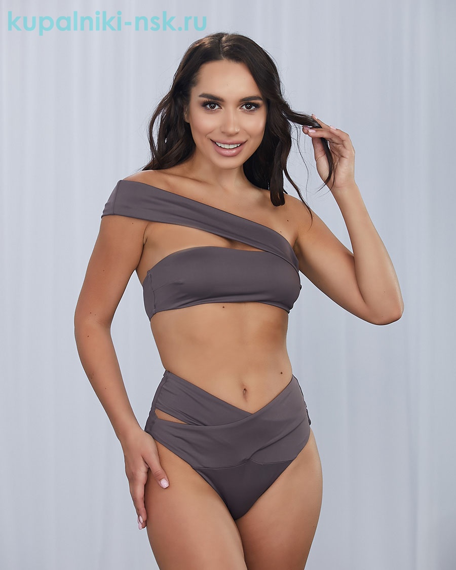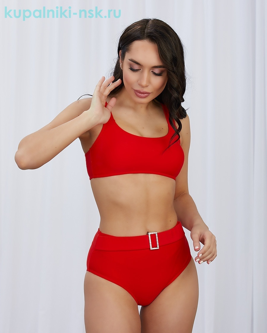 Раздельный комплект с плавками на высокой линии и плотным топом.