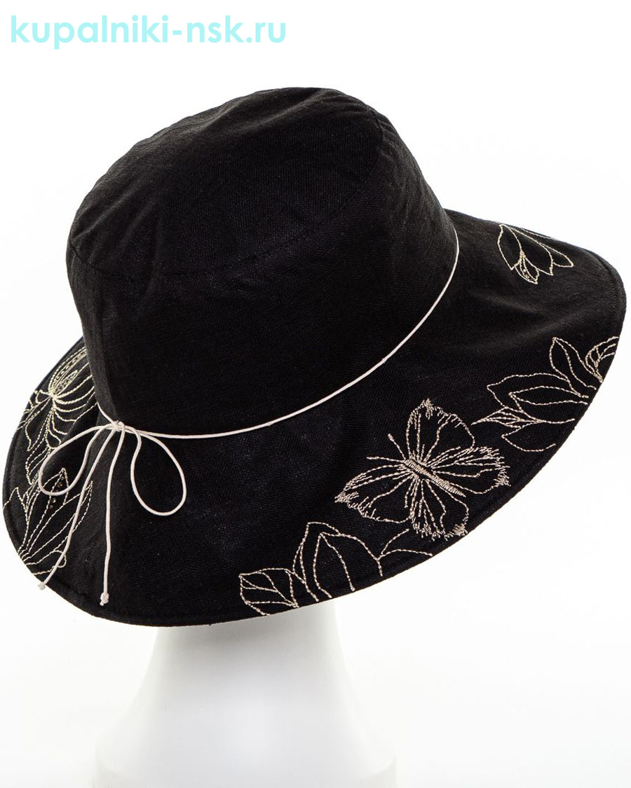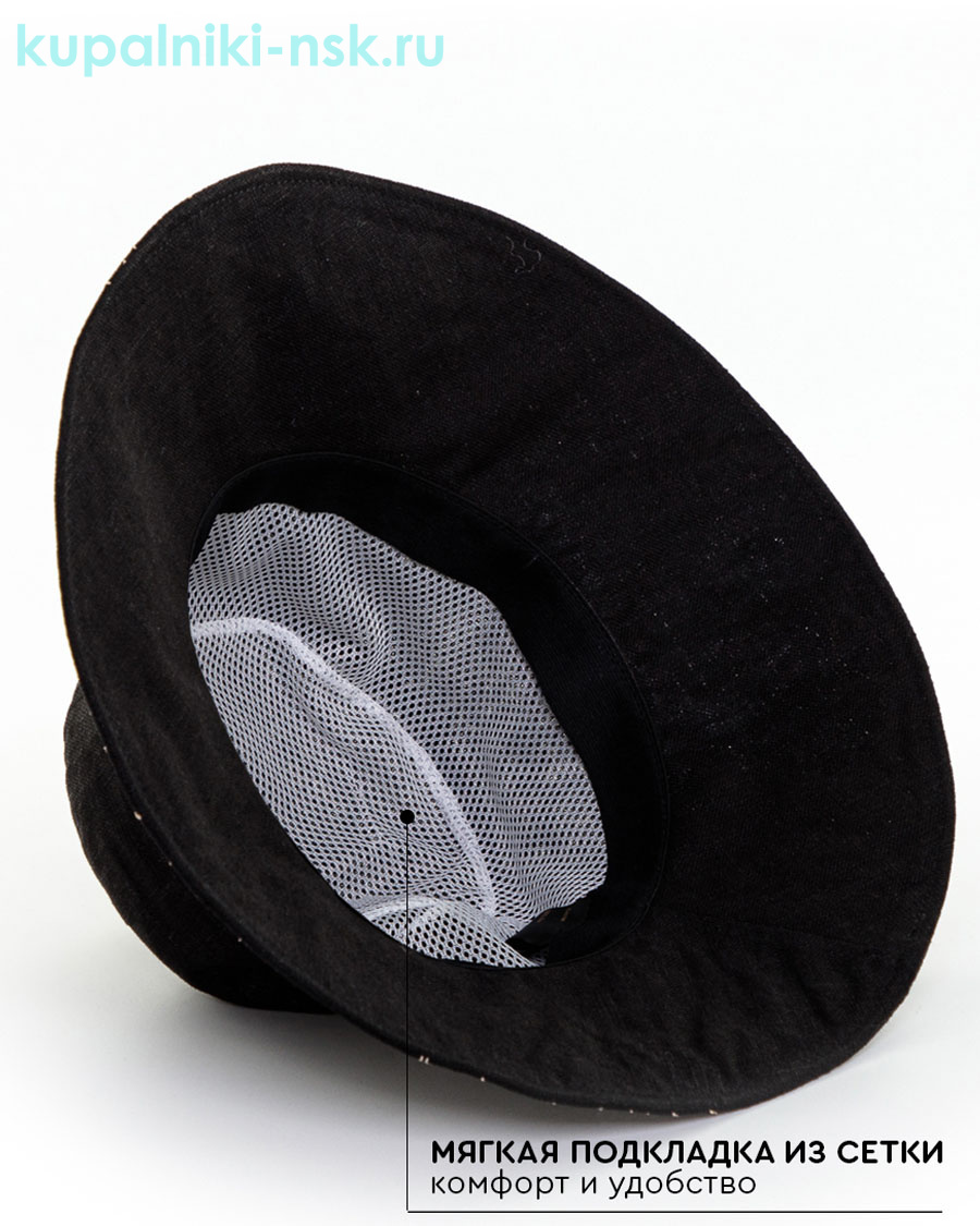 Головные уборы Levelpro Магнолия лен с отделкой Шляпа (56-57) - черный-отделка соломенный